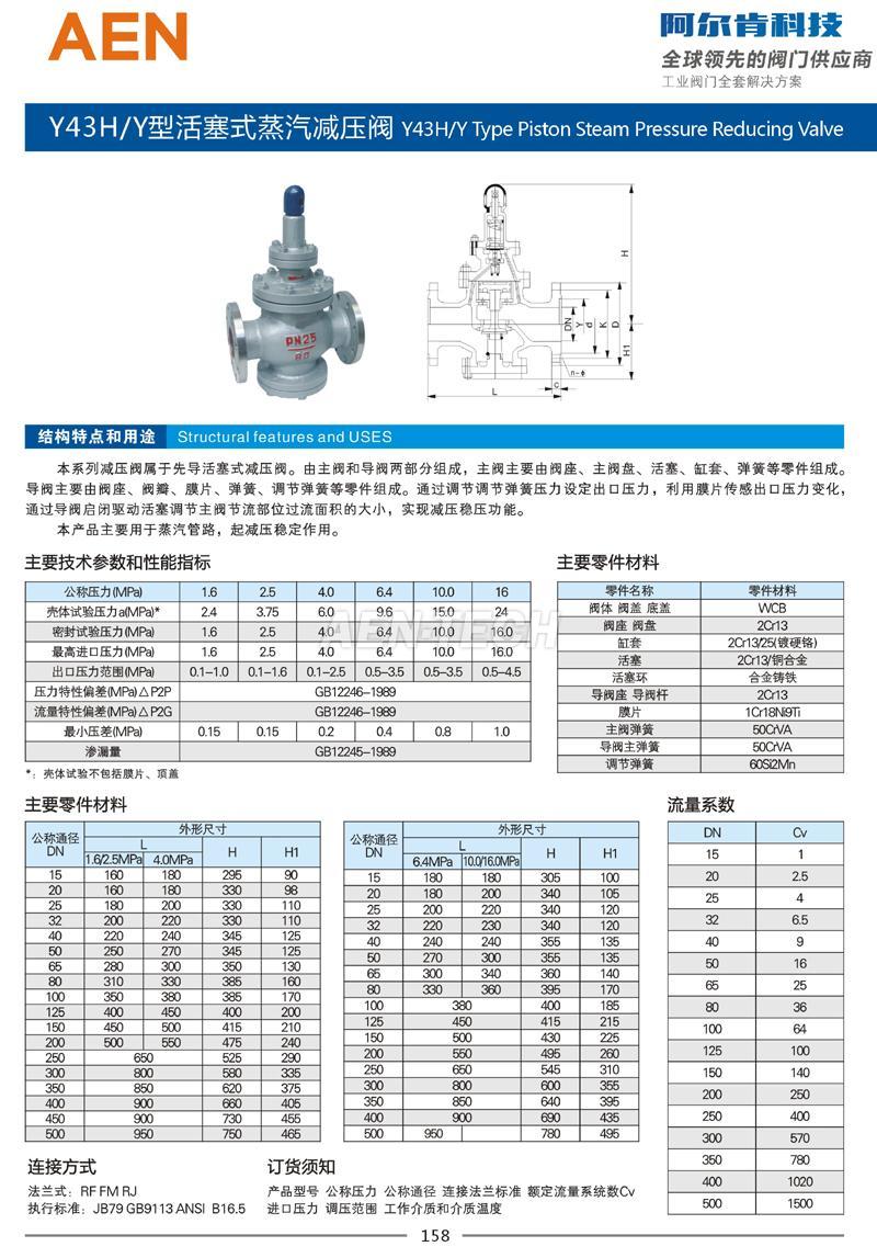 活塞式蒸气减压阀Y43H