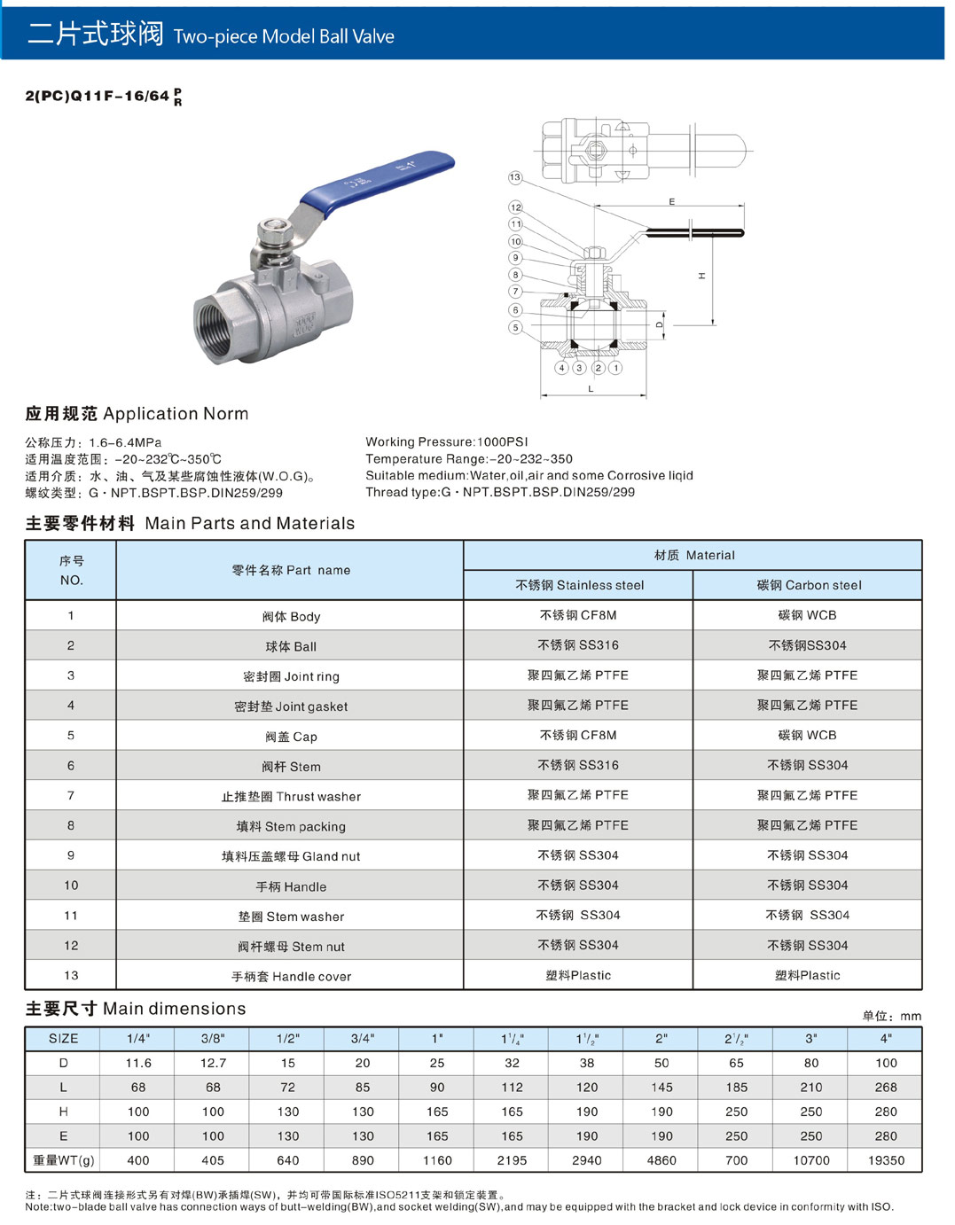 二片式内螺纹球阀 Q11F-16C