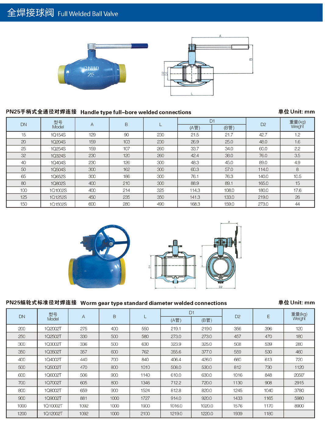 全通径焊接球阀Q61F-25C